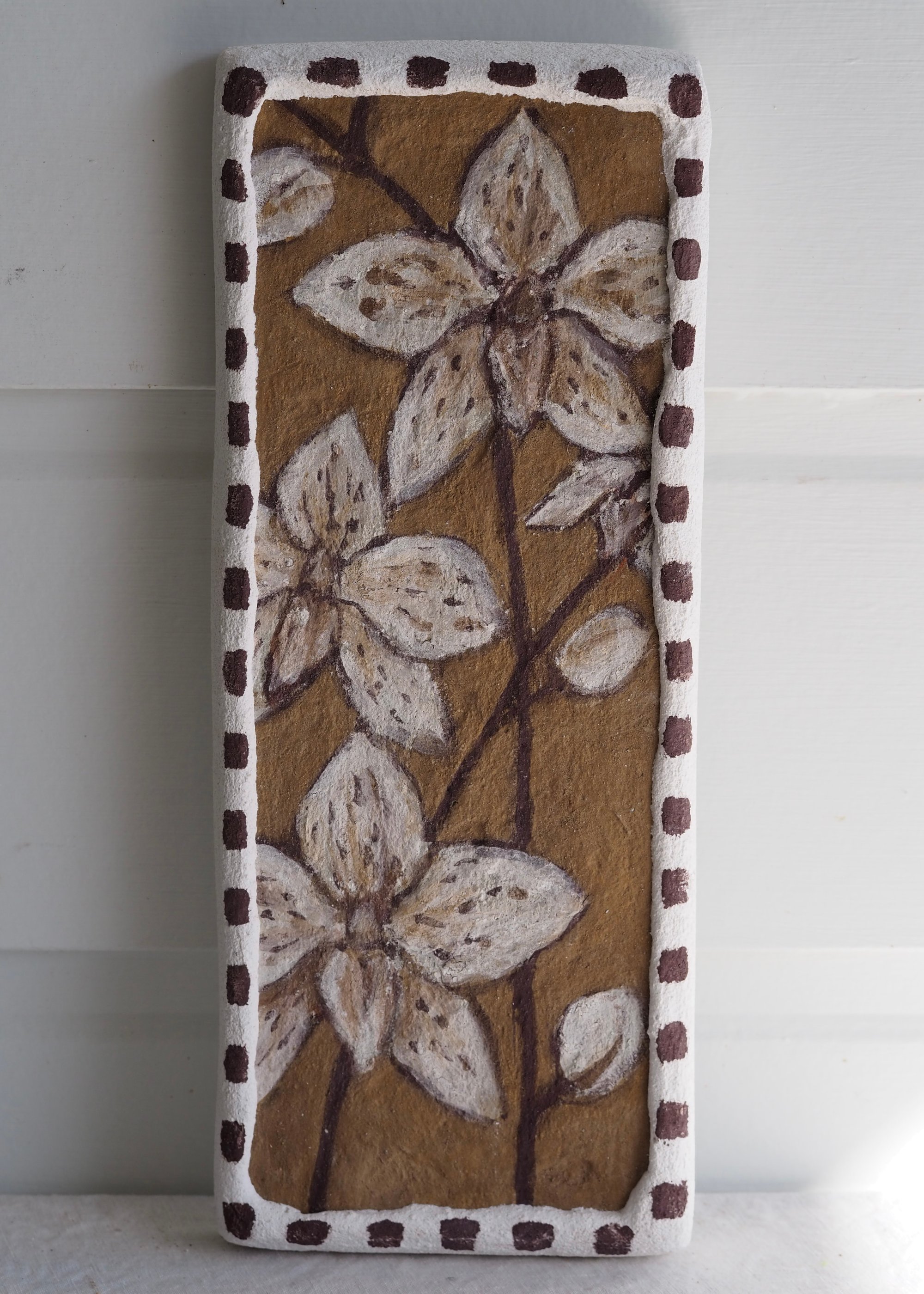 Original plaster plaque artwork. This piece is individually handcrafted and one of a kind. It features a raised plaster border/frame with painted details.