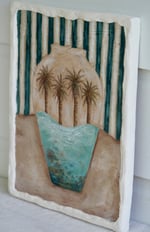Each plaque features a fine art print, a high quality reproduction of one of my original paintings. The plaque is finished with an organic and rustic plaster frame, and sealed completely with a satin/matte finish for protection.