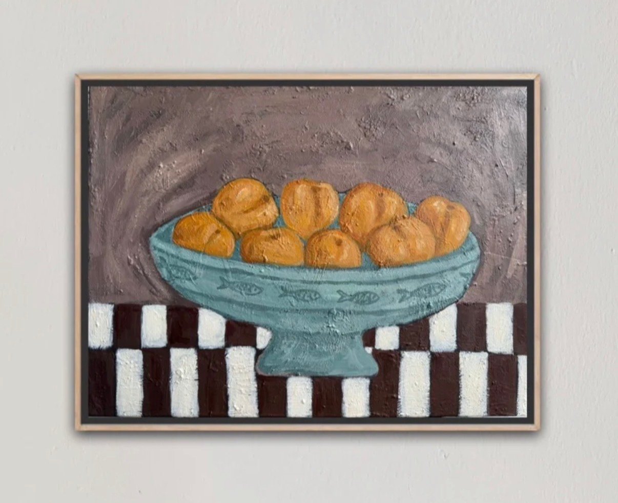 Medium: Acrylic & mixed media on stretched canvas, float framed in natural oak hardwood timber.